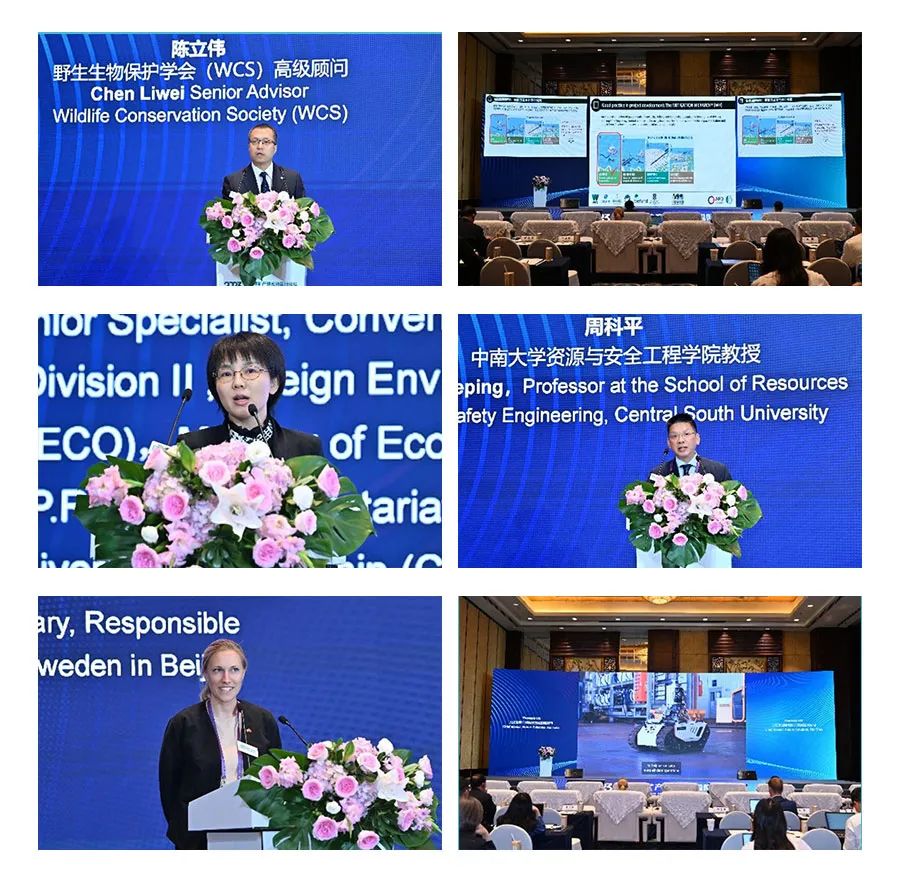 野生生物保护学会(WCS)高级顾问陈立伟主持“矿业探索生物多样性主流化的实践”部分,野生生物保护学会(WCS)COMBO项目、生态环境部对外合作与交流中心、中南大学资源与安全工程学院、瑞典驻华大使馆、力拓集团、英美资源等嘉宾参与该环节