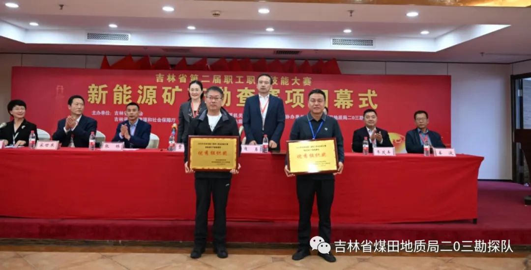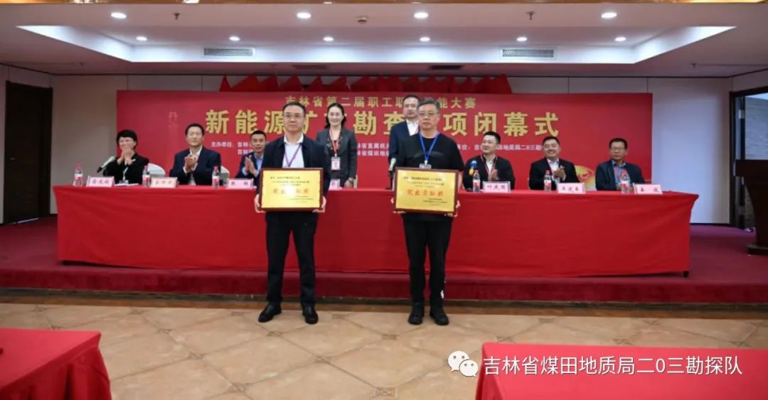 9月27日,吉林省第二届职工职业技能大赛新能源矿产勘查赛项在松原圆满落下帷幕。中国能源化学地质工会二级巡视员曹素华、国土工作部一级调研员叶庆国、吉林省总工会劳动和经济工作部处长张林、吉林省能源局党组成员、吉林省煤田地质局党委书记、局长崔勇、党委副书记、纪委书记宋世东、副局长李茂丰、总工程师姜波出席闭幕式并为获奖选手和团体颁奖,地质局工会主席吕文凝主持闭幕式。曹素华巡视员对大赛给予充分肯定并发表讲话,崔勇局长致闭幕词。