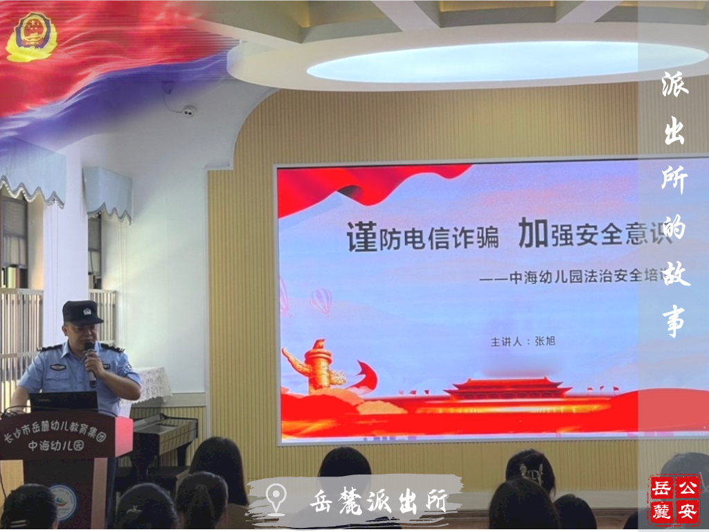 “电信网络诈骗分子通常实施哪些手段?”“刷单!”“冒充公检法!”“AI换脸假装亲戚朋友!”……9月15日,岳麓派出所民警张旭来到辖区幼儿园,为学校教职工开设了一场电信网络诈骗专题讲座,介绍了电信网络诈骗的常见种类、惯用手法、作案方式等知识,进一步提高教职工安全防范意识和识别能力,筑起教师网络安全意识的防护墙。