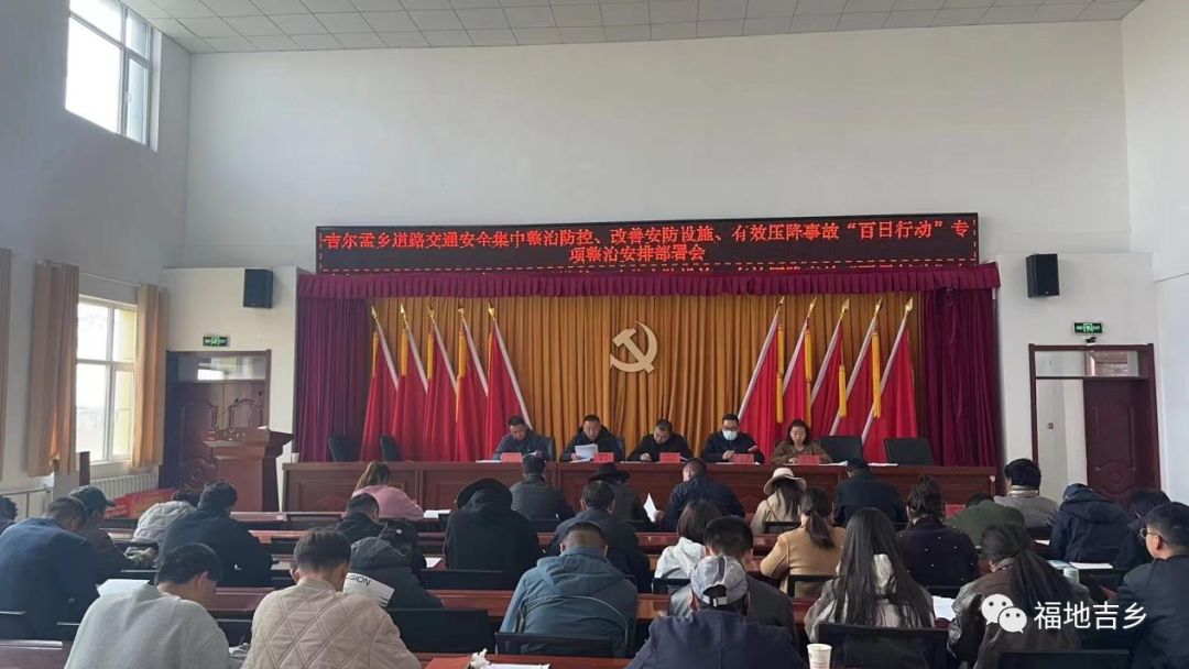 会上,传达了《州委州政府领导在全州“百日行动”专项整治部署会讲话的通知》《关于加强中秋,国庆期间安全生产工作的通知》等文件精神,并就做好吉尔孟乡道路交通安全集中整治防控,改善安防设施、有效压降事故“百日行动”专项整治工作进行了安排部署。