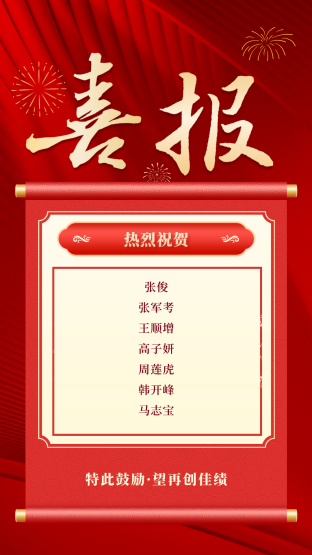 特此祝贺!同时希望所有晋级员工再接再厉,争取更优异的成绩。