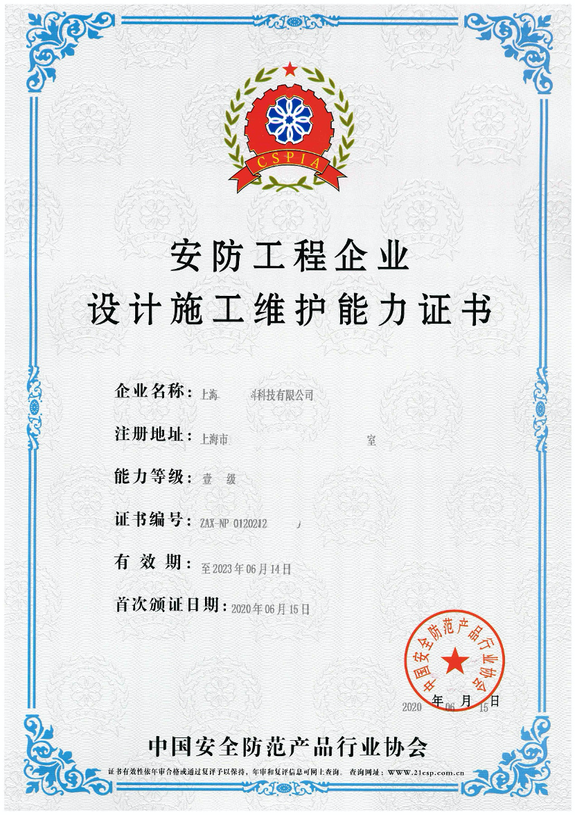安防工程企业设计施工维护能力证书