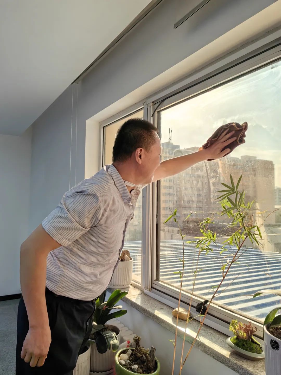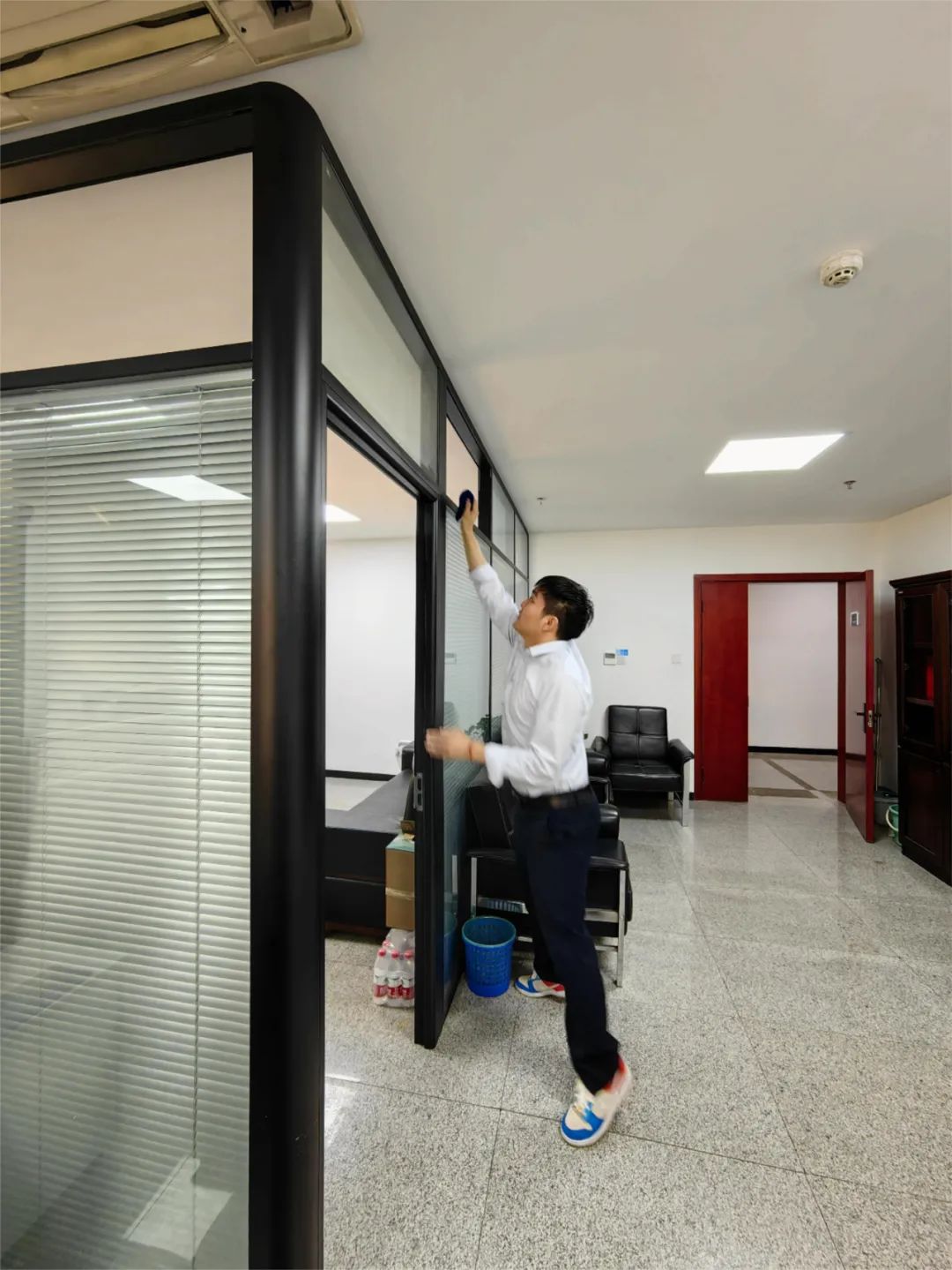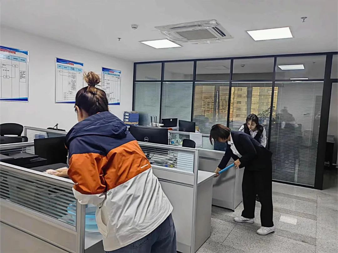公司组织“爱国卫生大扫除”活动,各部门人人参与、不留死角,使办公区域干净整洁、温馨舒适。