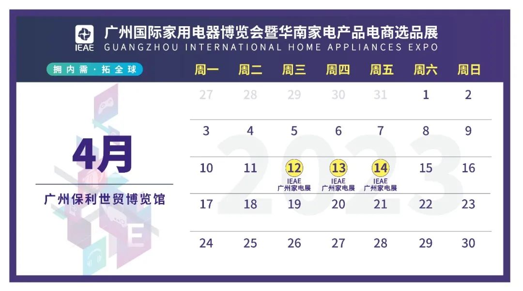 4月12日-14日,IEAE广州国际家用电器博览会暨华南家电产品电商选品展圆满举办!再次衷心感谢海内外参展企业、采购商、媒体以及观众的大力支持、热情参与!2023年9月15日-17日将迎来IEAE广州家电展的下一届展会,愿未来能够与您再次携手合作,推动行业发展!我们再次感谢诸位的莅临与对展会的支持!期待与您再相会!