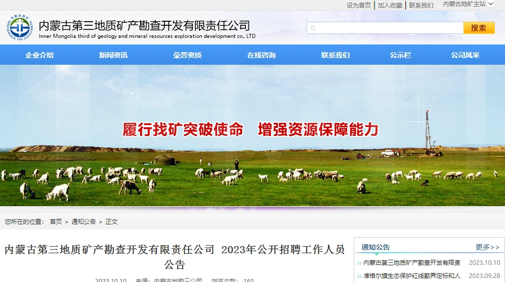 4.应聘人员在应聘期间,应及时关注内蒙古第三地质矿产勘查开发有限责任公司官网了解最新情况,因本人原因错过重要信息而影响考试聘用的,责任自负。应聘人员联系方式务必准确并保持通讯畅通。