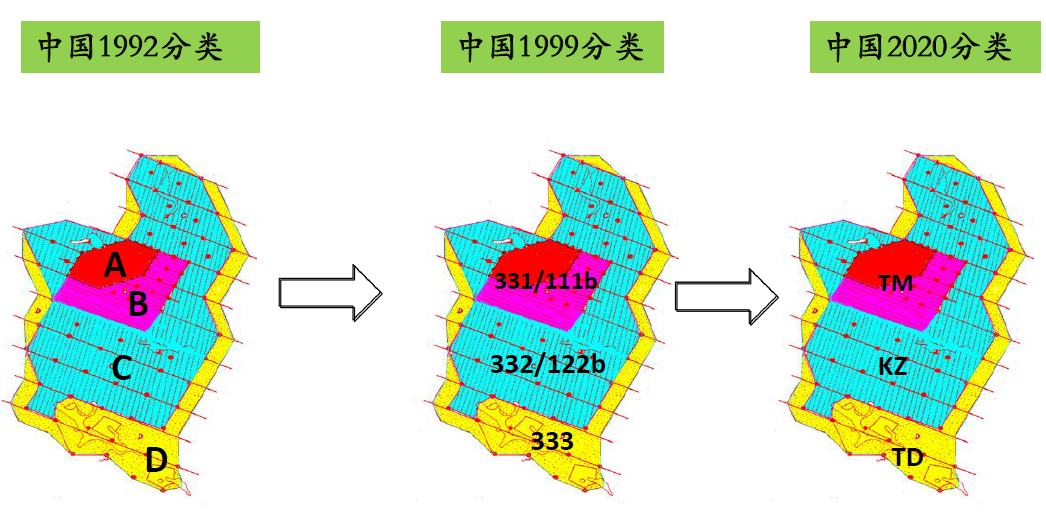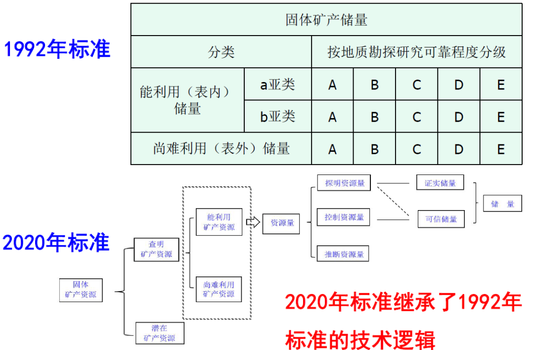 《自然资源部办公厅关于做好矿产资源储量新老分类标准数据转换工作的通知》(自然资办函〔2020〕1370号)提出了“固体矿产资源储量新老分类标准转换基本对应关系”,如下侧表格所示。与从定义角度提出的对应关系不同,如何理解?