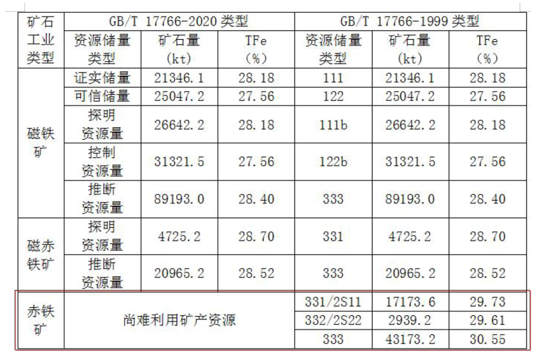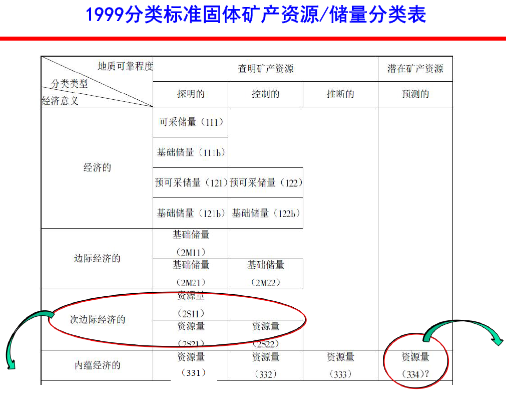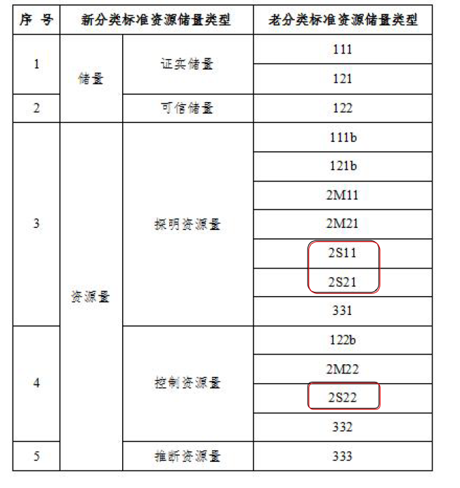 注:新老分类标准资源量的内涵不同;从本质上讲,基础储量应归属资源量;储量是现行分类中探明、控制资源量以及老分类中经济基础储量中可经济采出的部分。新老分类标准数据转换