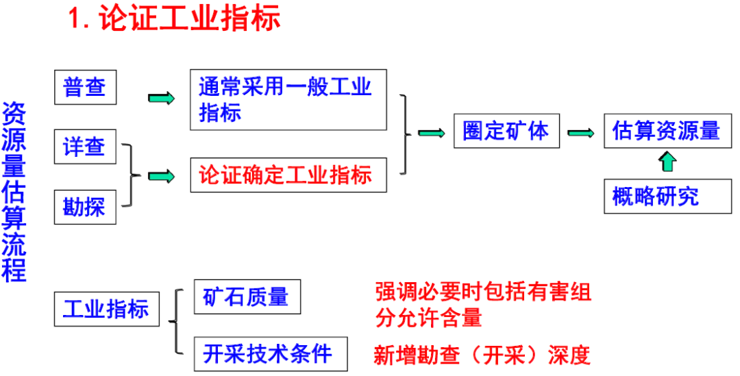 1.普查、详查和勘探阶段划分(目标、任务和内容没有实质变化)。2.探明、控制、推断资源量地质可靠程度评价的做法和标准没有改变。3.以可行性评价为手段,评价矿产资源勘查开发项目经济性的做法没有改变。