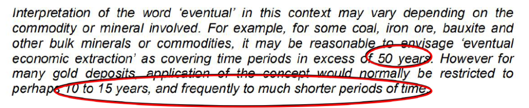 12.如何理解“预期可经济开采”中的“预期”?怎么判断预期可经济开采的固体矿产资源?从时间序列上讲,“预期”是指矿产资源开采的整个周期,不是指报告资源量当时。“预期”表达的是对未来开发利用矿产资源技术可行性和经济合理性的预测,不是证实。至少应通过概略研究,结合工业指标论证工作判断是否属于预期可经济开采的固体矿产资源。