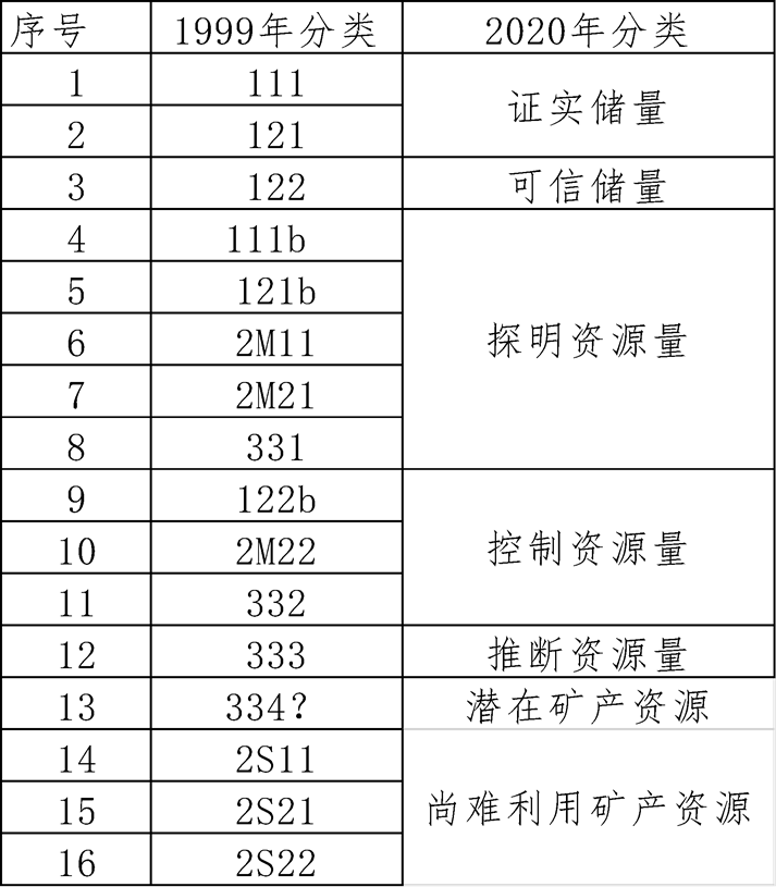 (三)新老分类标准资源储量类型的对应关系