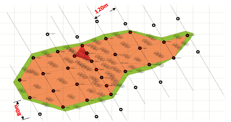 《矿产勘查矿石加工选冶技术性能试验研究程度要求》(DZ∕T 0340-2020)规定了各勘查阶段应达到的试验研究程度。难选矿不开展可选性试验,不符合技术标准要求,概略研究无法说明其是否为预期可经济开采,因此,不能提交资源量。开展了可选性试验,但也不能说明其是否为预期可经济开采时,亦不能提交资源量。14.如何理解总则规定的确定勘查类型的“三条线”原则?“三条线原则”只适用Ⅰ、Ⅱ类型矿体圈连,不适用Ⅲ类型矿体。如某一矿体确定为Ⅱ类型,Ⅱ类型的基本勘查工程 间距即圈定控制资源量的勘查工间距为120m×80m,那么至少应能以120m线距连续布置3条勘查线,每条线上至少有2个钻孔连续见矿,否则,不能确定为Ⅱ类型。