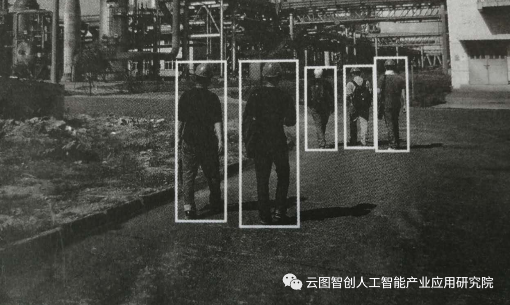 如图所示,在一张工厂区域图片中,对行人进行了标框标注