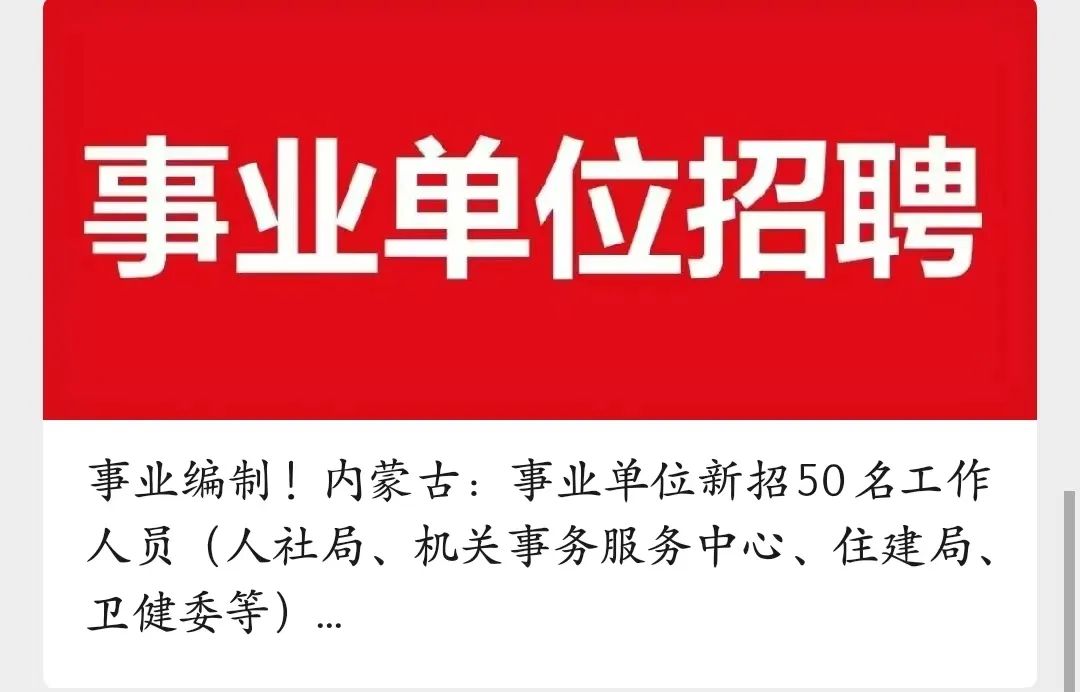 点击上方蓝字关注“内蒙古就业招聘公布平台”,每天为您发布内蒙最新公务员招聘丨事业单位招聘丨铁路招聘丨国企 | 私企等知名企业高薪招聘信息。马上关注我们吧~