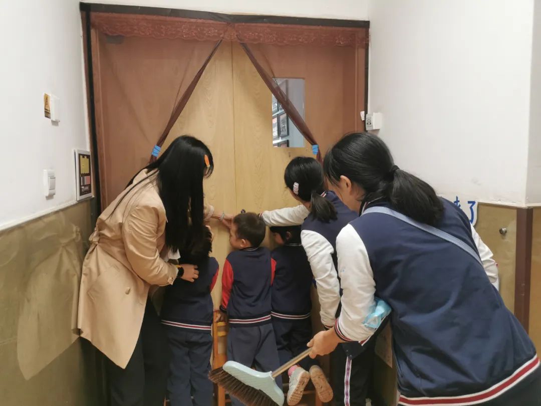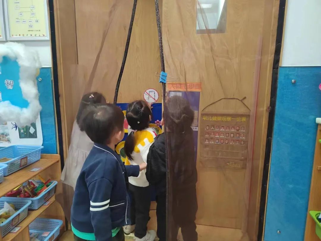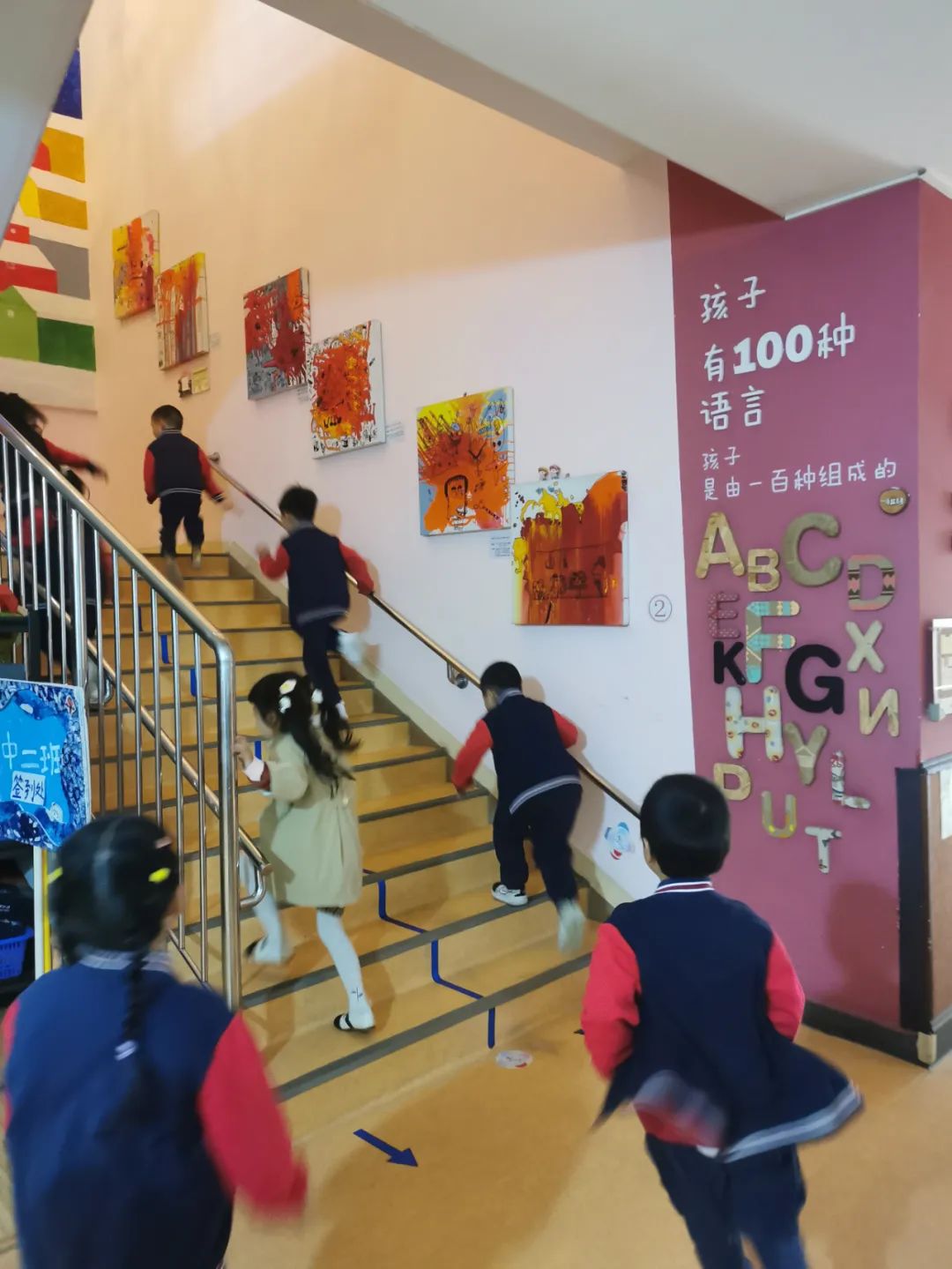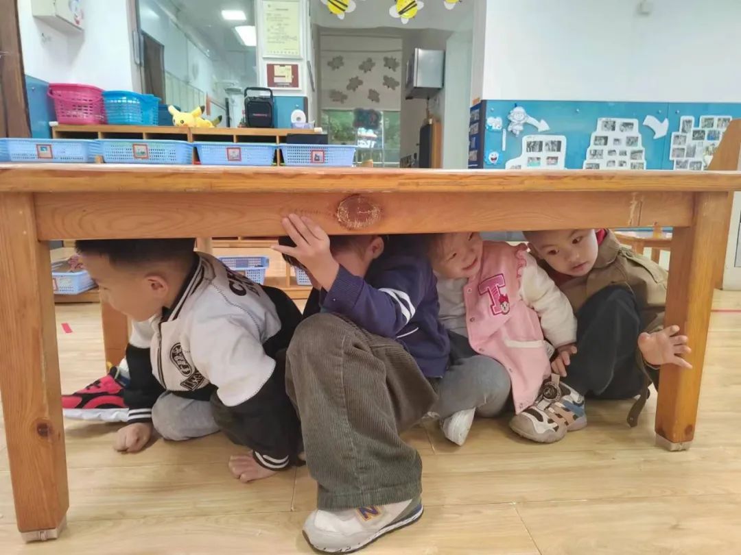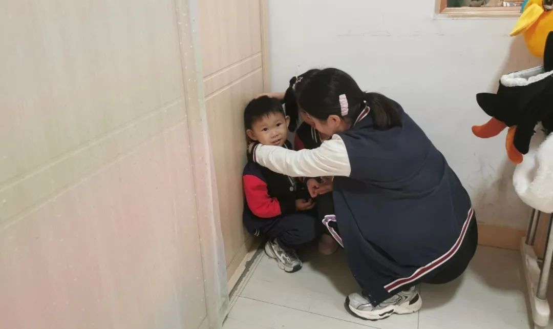 幼儿园第一时间拉响警报,各班教师迅速按防恐防暴紧急预案的疏散线路带领孩子到最近的教室躲避。大家迅速关闭教室门窗,防止“歹徒”闯入班级伤害幼儿,孩子们躲进了相应教室,老师们用椅子将门抵住,并拿起扫帚等工具守在门口观察“歹徒”的动向。