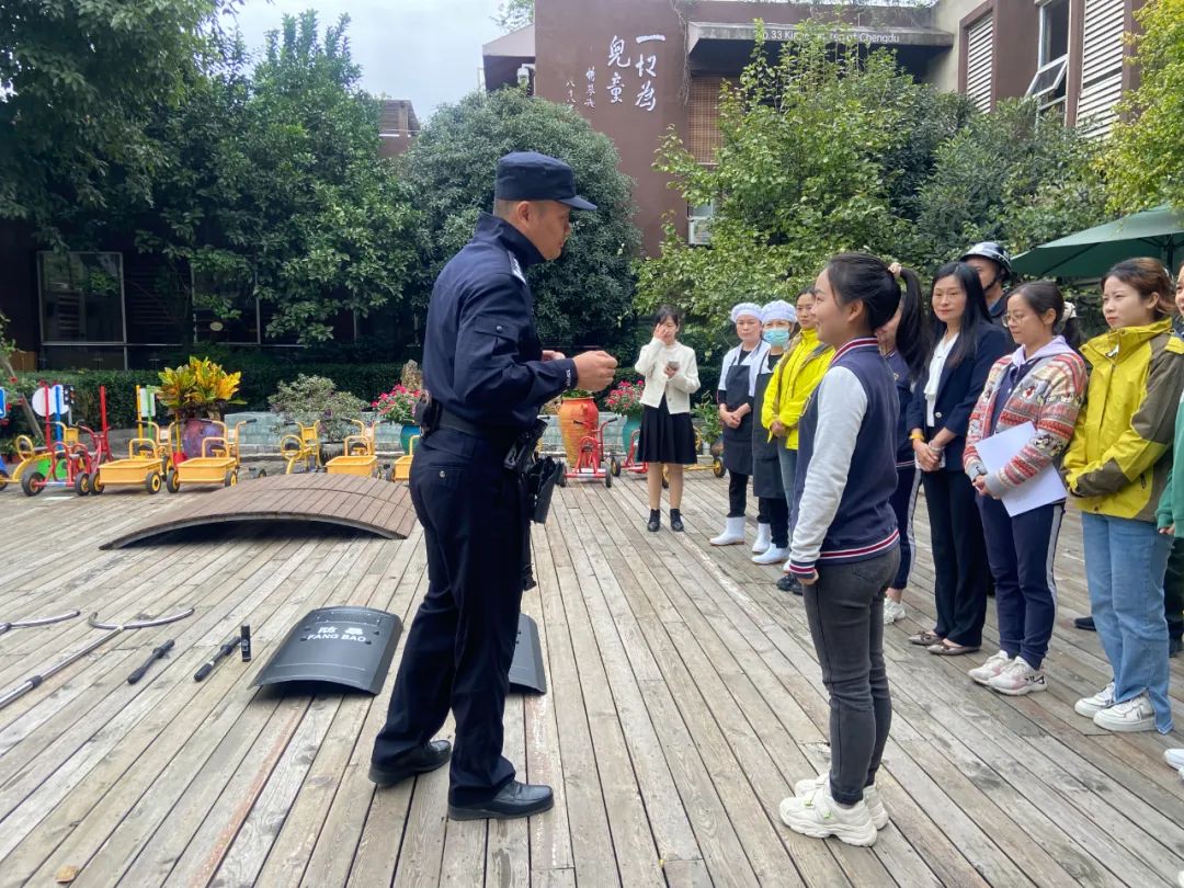 14:00,由红牌楼派出所警官到园,对教职工进行了培训。主要从徒手防卫与控制、防暴器械的使用方法进行了讲解,并通过现场操作示范、实操练习,进一步强化了教职工防恐防暴处突能力。