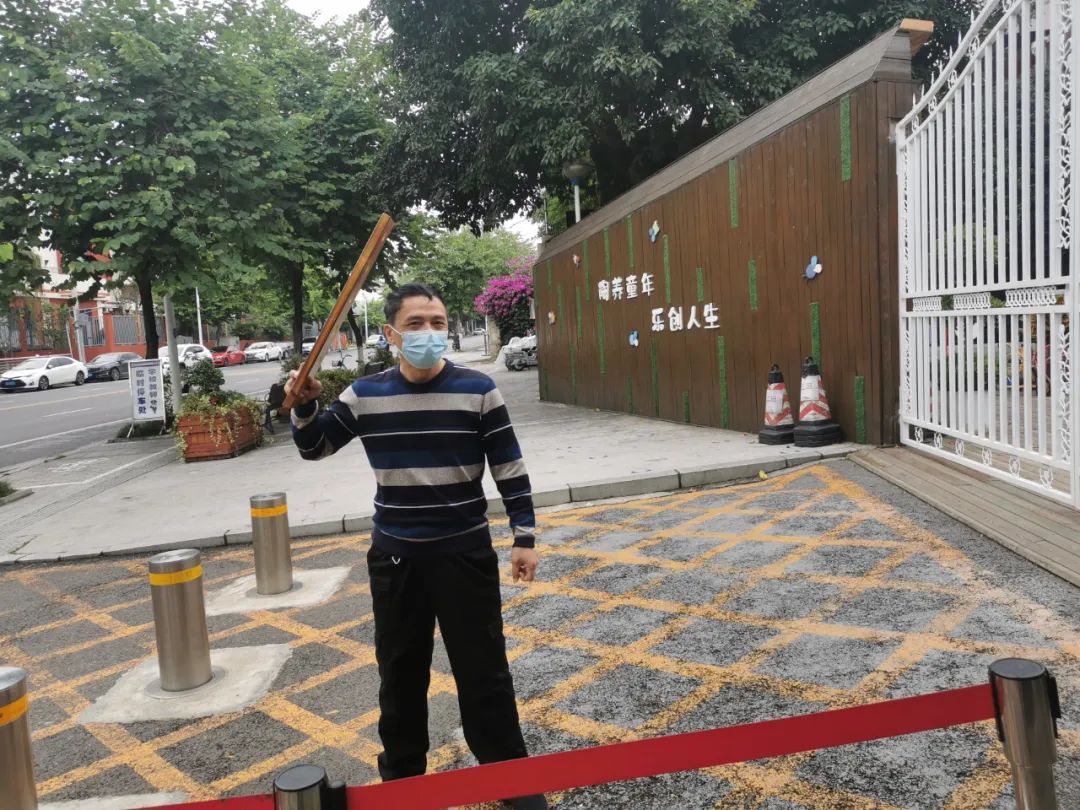 14:30演练开始!由后勤工作人员扮演的“歹徒”,模拟当幼儿在上学时,突然冲入幼儿园。