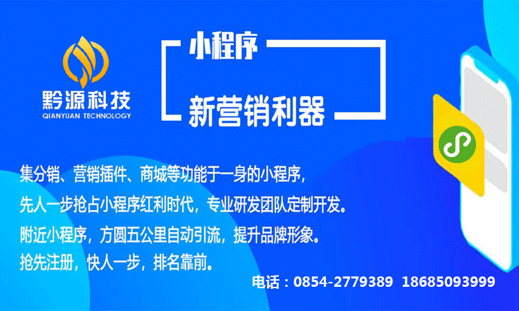 黔源科技拥有大量小程序开发、运营经验,合作过贵州惠尔安家政有限公司小程序项目、瓮安华强口腔小程序开发等众多项目。是一家集软件开发、APP、网站建设、公众号及微信小程序开发、电子商务等于一体的公司。