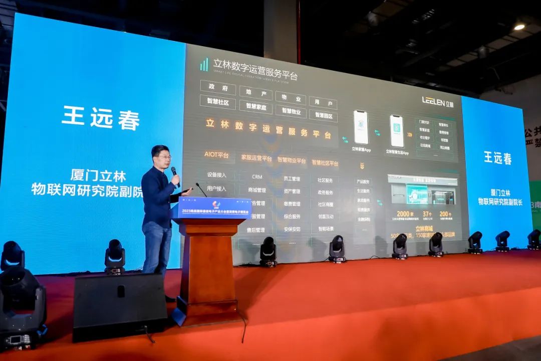 厦门立林物联网研究院副院长王远春发表主题演讲《立林数字运营服务平台驱动数字生活产业升级》。他从数字应用角度阐述了通信电子在智慧社区的广泛应用,包括安保服务、社区服务、智能家居、家政服务、远程看护、安防报警等等,通信电子正有力的推动着安防行业向前发展。