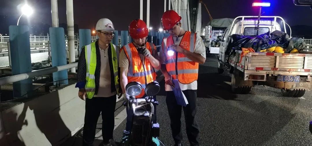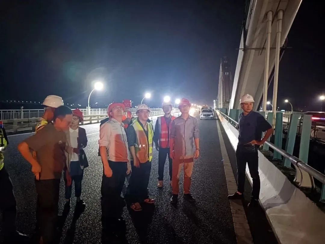 为进一步压实湾边大桥、湾边互通及橘园洲大桥病害处治工程项目施工单位安全生产责任,从源头上筑牢安全生产红线,提升项目安全管理水平,10月25日晚上,交建养护公司总经理江彬带领相关部门赴橘园洲大桥、湾边大桥对吊杆索力检测、桩基施工等夜间作业开展安全检查。