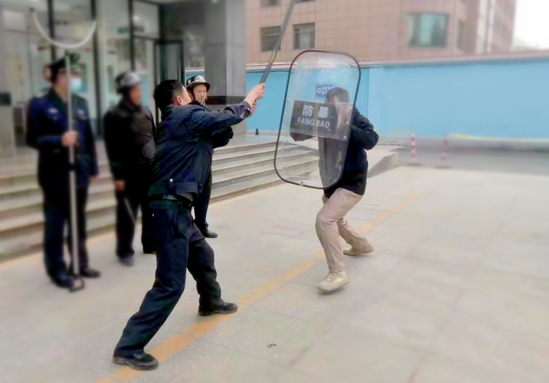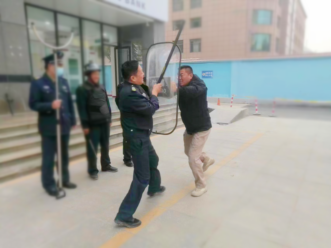 众安安防淄博办事处针对银行多发案件的特点,特别组织了防暴技能专项培训。通过“理论+实操”的形式,围绕反恐、防暴、消防三大板块,介绍了器械使用方法,并在营业部操场进行了实操演练。