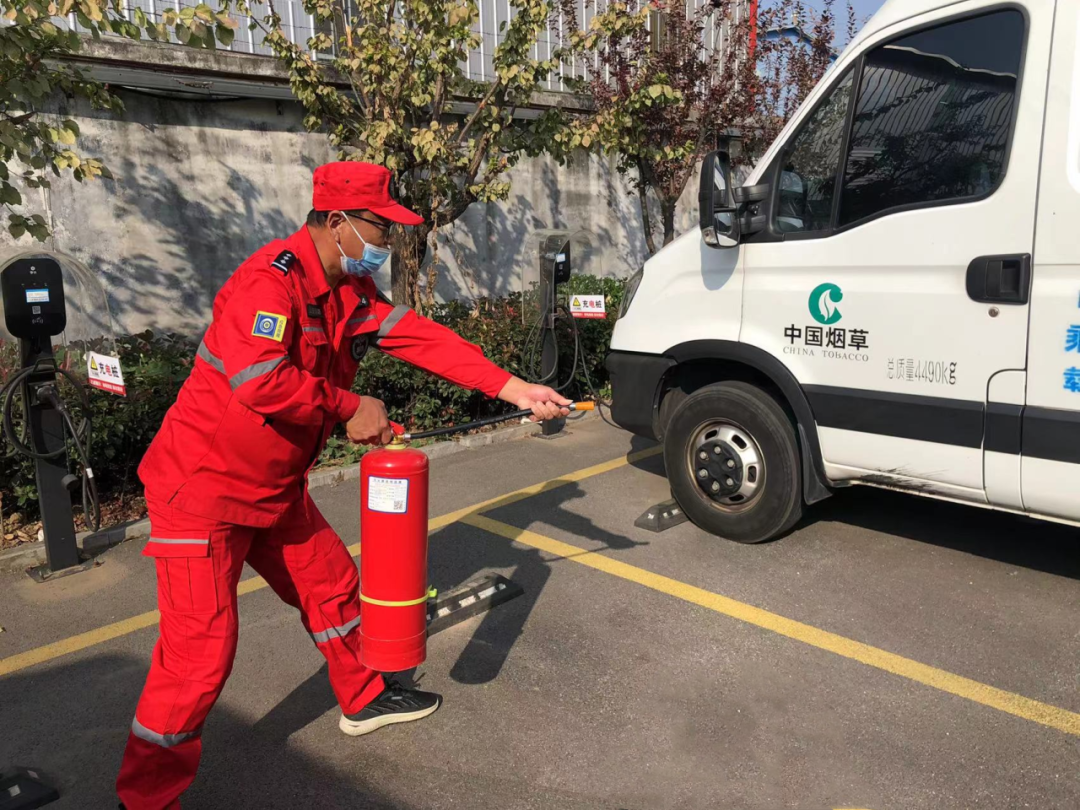 新能源汽车火灾具有处理难度大、燃烧速度快、容易发生爆炸等特点,为了检验和提升执勤队员应对火灾事故的处置能力,山东枣庄烟草有限公司岗点特别组织新能源汽车突发事件模拟演练。
