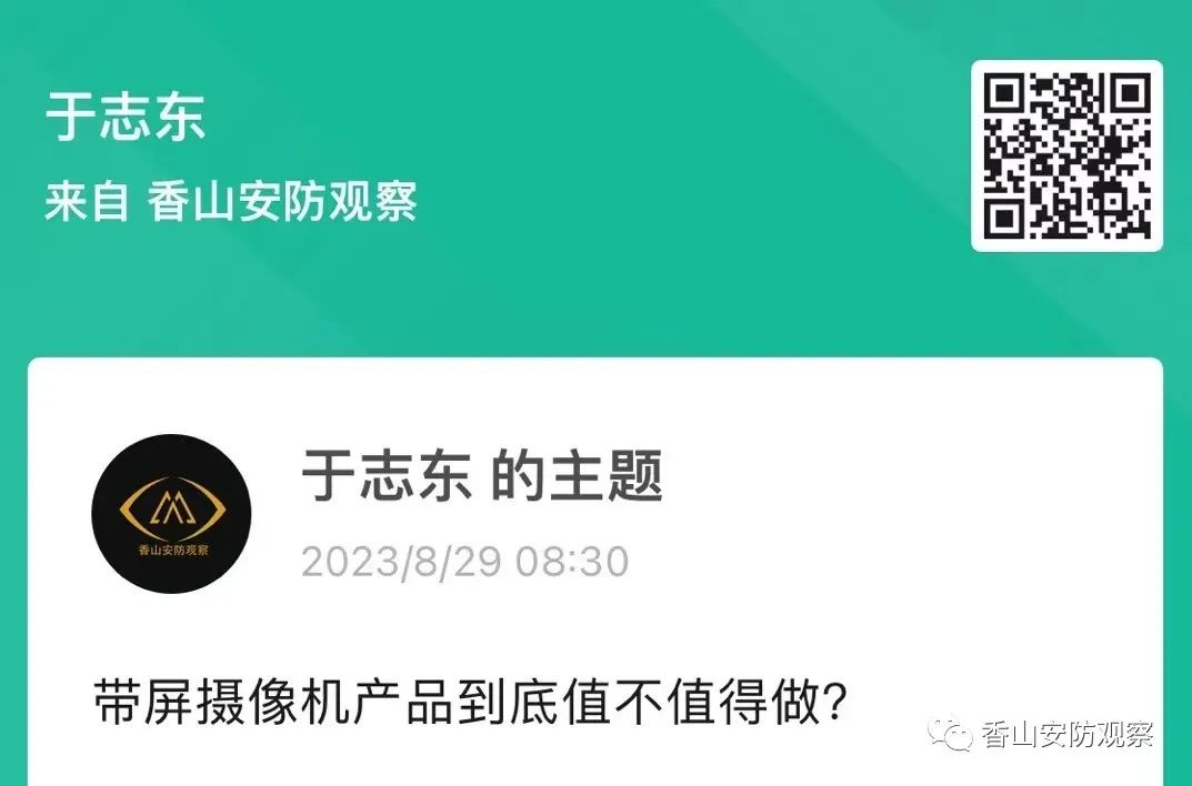 对于该产品我也做过专门的分析讨论,可能与现在各个厂家的乐观态度有一些分歧,具体可以查看我发布在知识星球的文章《带屏摄像机产品到底值不值得做?》一文,也可以扫描下方二维码查看。