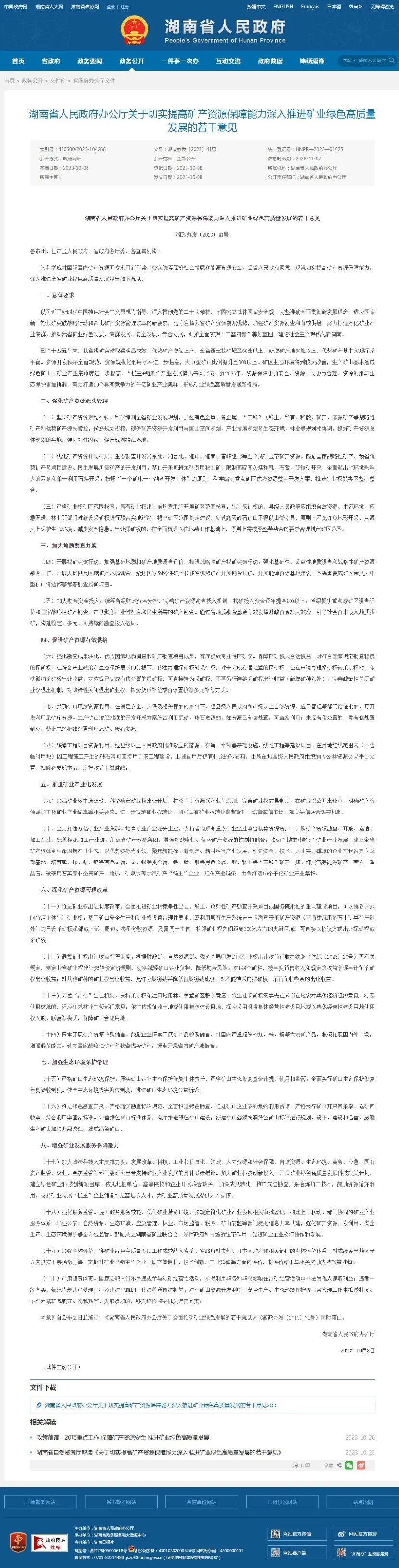 关于切实提高矿产资源保障能力深入推进矿业绿色高质量发展的若干意见