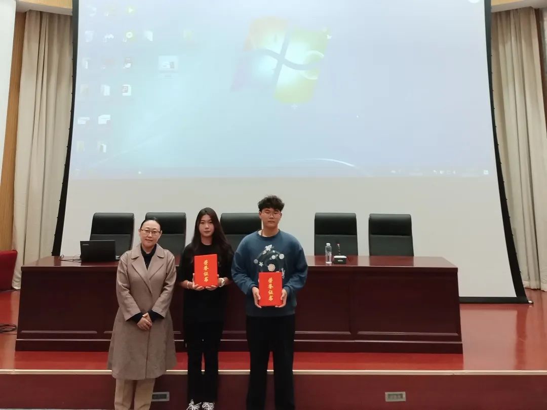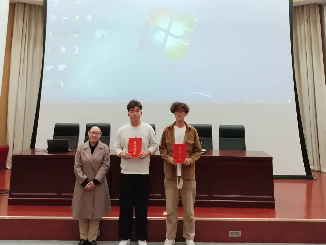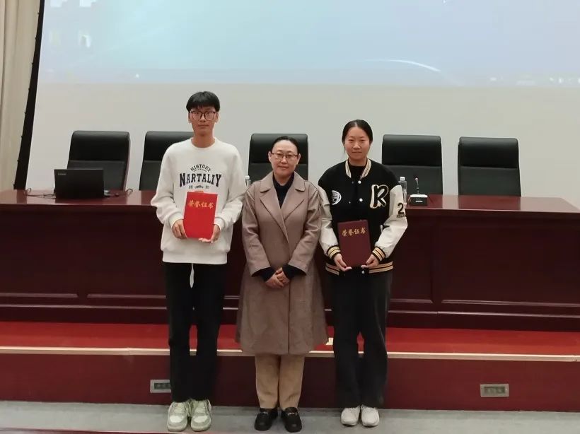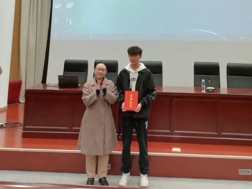 2024届毕业生本学年在职业技能竞赛上获得了可喜可贺的成绩,会前由安防教研室主任孔庆仪老师宣布表彰决定,海南副院长给获奖学生颁奖。