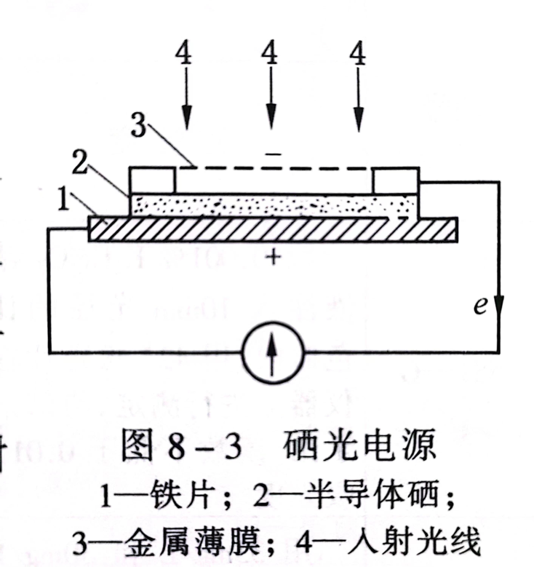 当光线照射到半导体硒的表面上,硒放射电子,由于硒是半导体,具有单向导电性,电子只能流向金属薄膜,因而使它带负,成为光电池的负极;硒层由于失去电子带正电,因而使铁层带正电,成为光电池的正极。这样便在金属薄膜和铁片之间产生电位差,线路接通后便产生光电流。当照射光的强度不大,而且光电池外电路的电阻较小时,光电流与照射光的强度成正比。硒光电池对各种不同波长的敏感度是不同的:它对600mm 附近的区域波长光最灵敏,而对紫外,红外区域光均无效应。