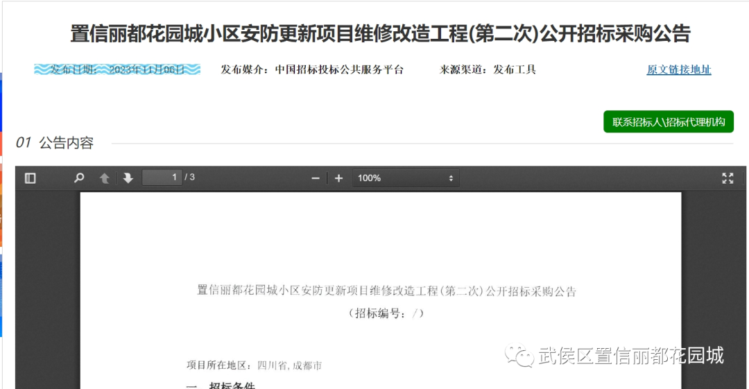 小区安防工程招标已面向社会正式发布,请全业主积极推荐供应商,详细内容请搜索“中国招标投标公共服务平台”