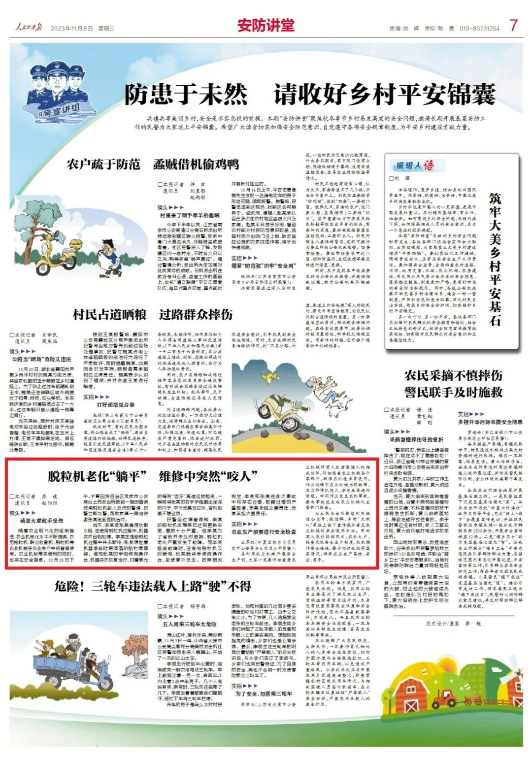 白土岗派出所持续利用微信公众号、微信群、乡村“大喇叭”等线上线下宣传媒介普及农业机械的安全使用方法。同时深入农机经销网点、农机大户,检查农机安全生产制度、农机操作安全措施、警示标识张贴等落实情况,确保农业生产高效、安全、有序。