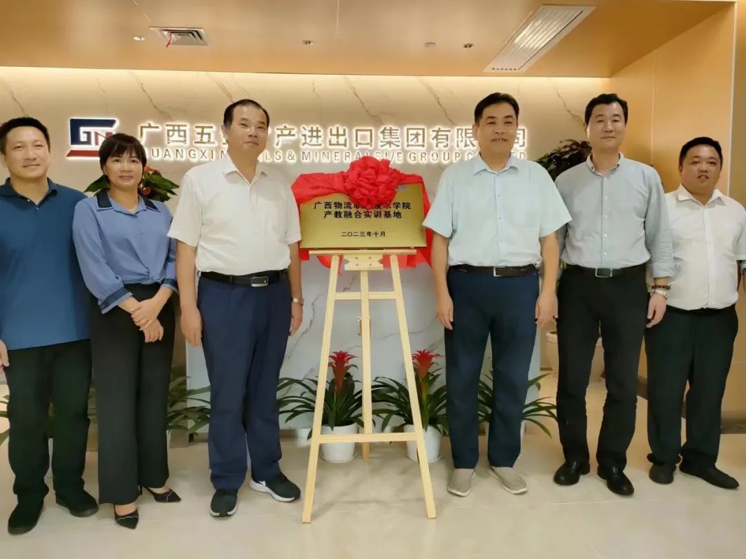 座谈会后,曹津津与朱海强共同为广西五金矿产进出口集团有限公司—广西物流职业技术学院产教融合实训基地揭牌。