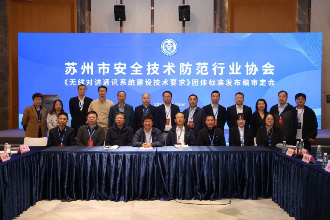 苏州安防协会在苏州国际博览中心A馆召开了《无线对讲通讯系统建设技术要求》团体标准审定发布会。审定发布的专家有苏州市安防协会秘书长王坤泉、苏州科技大学高级工程师钱震、苏州嘉华计算机系统集成工程有限公司副总经理朱雨真、苏州市发改委电力处处长顾斌、苏州市质标院研究中心主任汤峥、上海市无人机安全管理协会副秘书长王凌峭。参加本次会议的还有标准主要起草单位苏州邦耀电子科技有限公司总经理周德宏;参与标准起草的专家组成员:吴雪芳、邵斌、陈培建、刘湘盈。