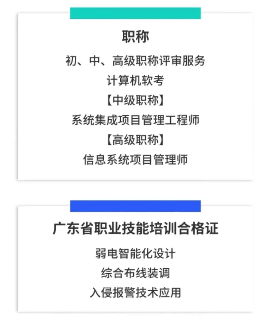 弱电相关工种省内唯一日常开展培训与鉴定一条龙常态化服务的社会培训评价组织,每月均有工种鉴定安排。