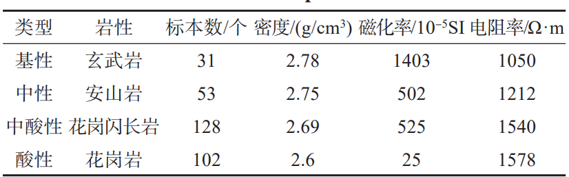 表2 岩浆岩物性统计一览表
