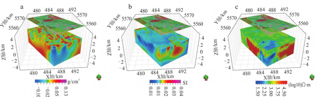 a.视密度;b.视磁化率;c.电阻率
