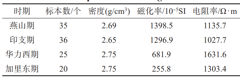 表3 不同时期花岗闪长岩标本物性统计