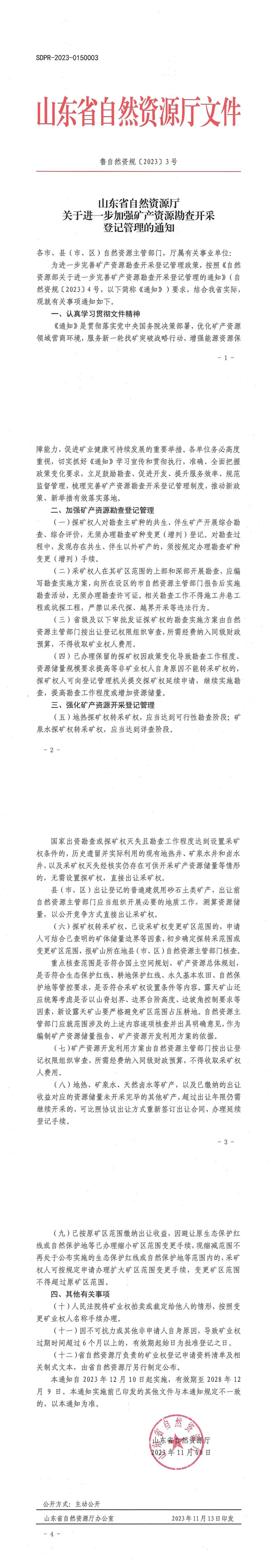 山东省自然资源厅发布关于进一步加强矿产资源勘查开采登记管理的通知