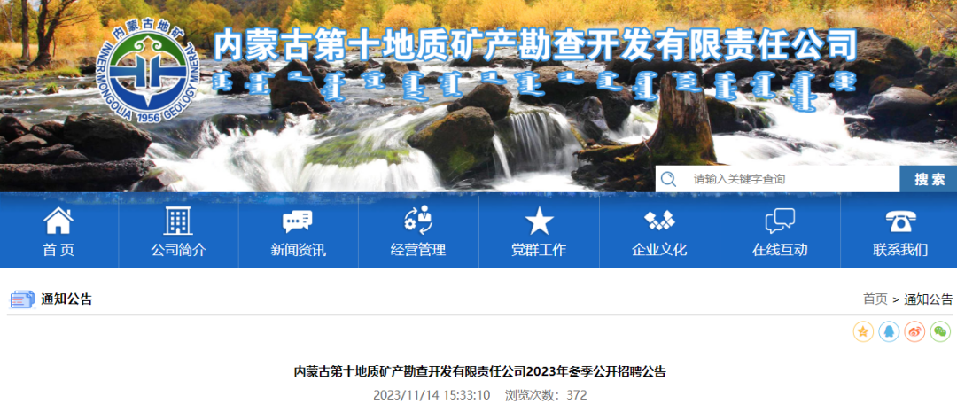 内蒙古第十地质矿产勘查开发有限责任公司2023年冬季公开招聘公告