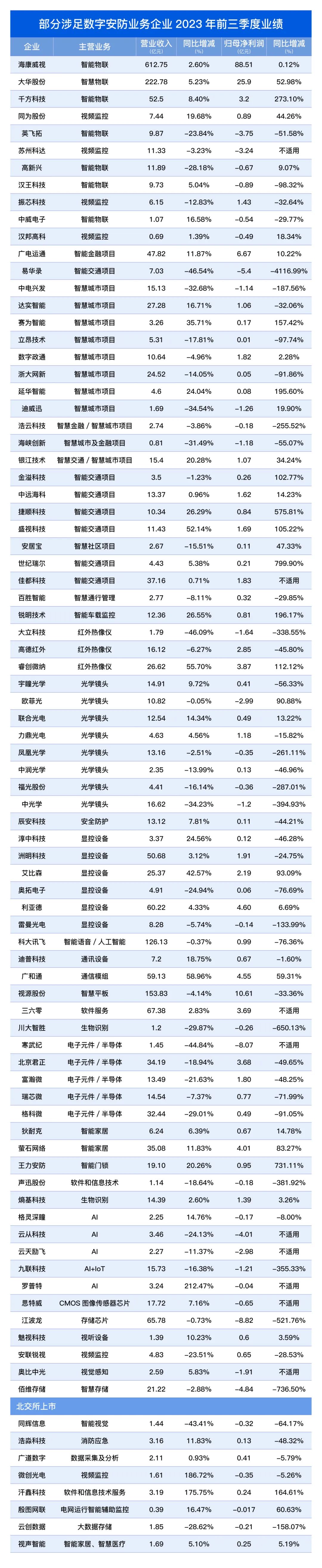 伴随它的落幕,2023年安防企业三季报也陆续公布完毕,就报告的表现来看同样让人喜上眉梢。据不完全统计,86家部分涉足数字安防业务的上市企业2023前三季度盈利能力持续回升,超六成的企业实现盈利,虽然也有部分企业亏损,但亏损幅度收窄明显并有望实现全年扭亏为盈。具体如下图所示: