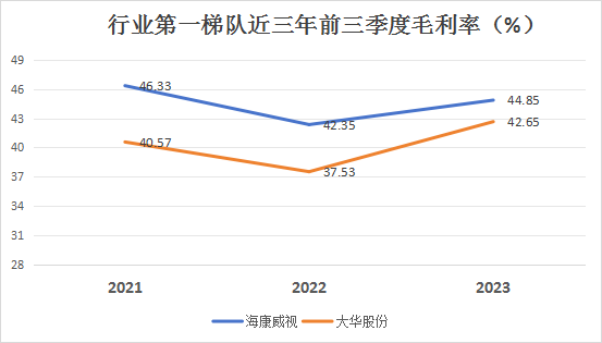 作为占比市场规模前列的第一梯队企业海康威视、大华股份2023年前三季度不管在总营收、净利润、毛利率以及现金流、存货周转率等方面都有所好转。
