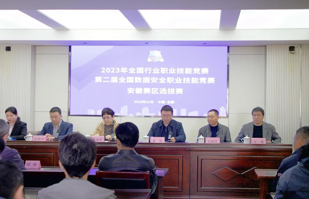 11月20日,2023年全国行业职业技能竞赛—第二届全国数据安全职业技能竞赛安徽赛区选拔赛正式拉开帷幕。安徽省安全技术防范行业协会理事长王慧莉,安徽省公安厅科技信息化处副处长李伟、警务技术二级主任吕修宏,安徽省技能人才管理服务中心副主任张维明,合肥安防技术职业培训学校常务副校长王侃,以及竞赛裁判员、参赛选手参加了开幕式。安徽省安全技术防范行业协会秘书长于利莉主持开幕式。