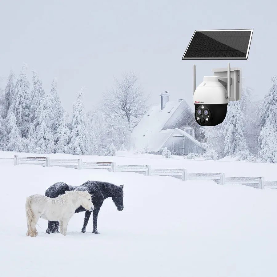依靠太阳能板供电的4G双目电池球机,双目变焦设计,10 倍电子变倍,近焦看全景、远焦看细节。安装在农场牧场,4G连接,不用特地拉网布线,方便又实用。工程塑胶材质,IP66防尘防水,4000V 防雷保护。