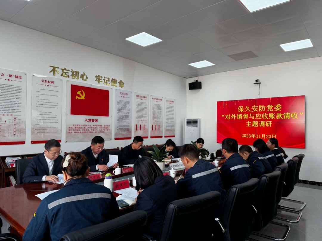 11月23 日,保久安防党委委员、副总经理高源到贵州盘化实业有限公司开展“对外销售和应收账款清收”主题调研,发展运营部、纪委办公室、党群工作部相关负责人陪同。