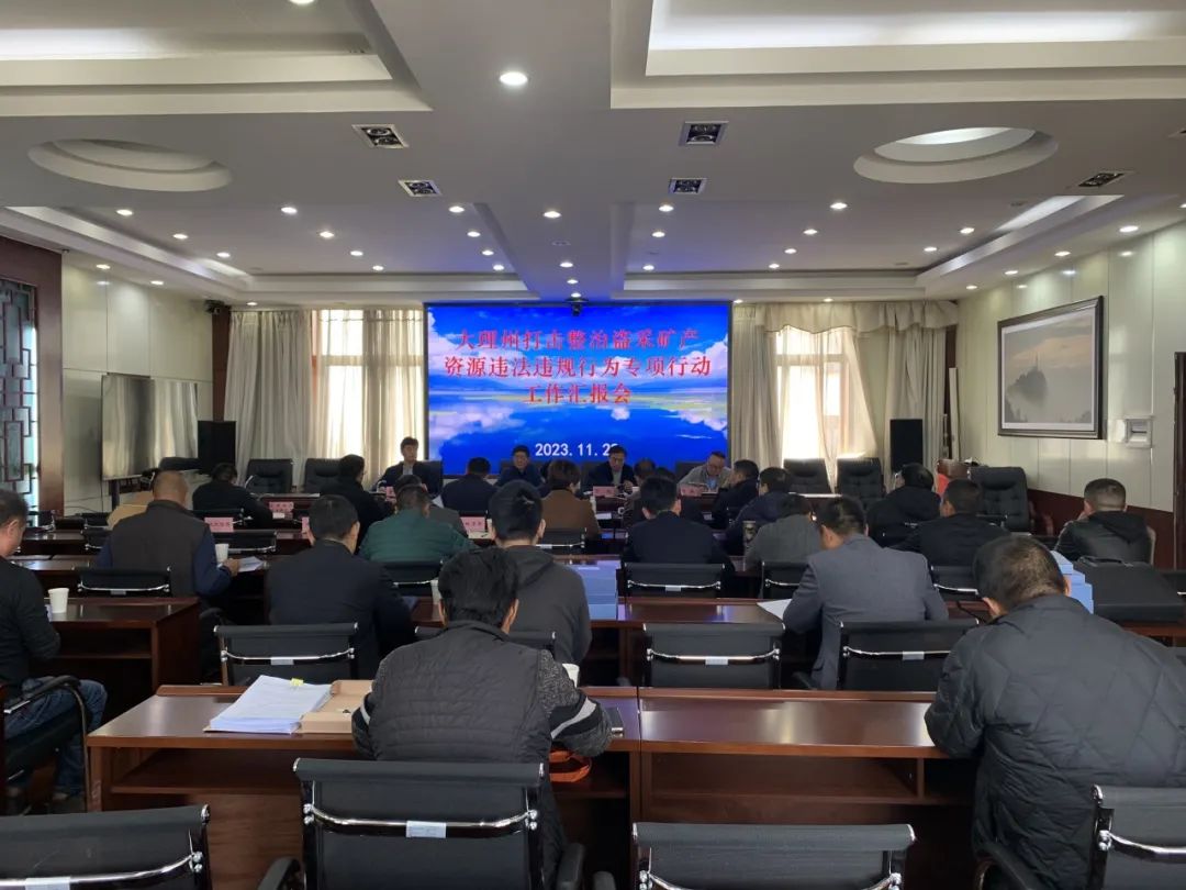 11月29日下午,检查组查阅了相关台账资料,召开了汇报会。大理州政府副秘书长代表州人民政府汇报了全州打击整治盗采矿产资源违法违规行为专项行动工作情况,检查组反馈了相关情况。