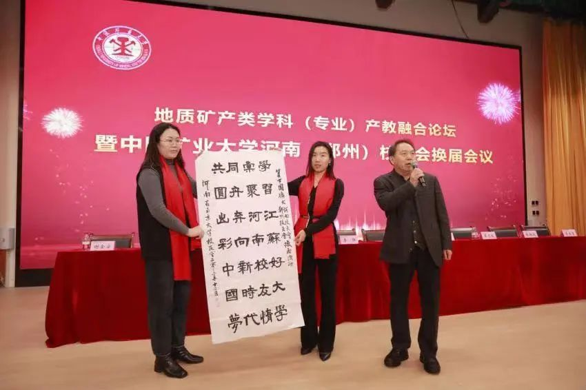 2023年12月10日,中国矿业大学河南、郑州校友会换届会议暨地质矿产类学科(产业)产教融合论坛在河南地矿职业学院成功举办,中国矿业大学校党委常委、副校长、校友总会常务副会长李强出席会议,对外合作与发展处处长、校友总会秘书长钟晓东,对外合作与发展处副处长、校友总会副秘书长李霞,对外合作与发展处校友会办公室主任罗希,经济管理学院副院长朱晓东、经济管理学院校友办主任王良洪,经济管理学院教学办主任张旭,化工学院副书记孙志强,四川、陕西、贵州、重庆、上海、南京、武汉、石家庄、无锡、晋城、内蒙古等中国矿业大学兄弟校友会代表及中国人民大学、武汉大学、华中科技大学、东南大学、南京大学、吉林大学、复旦大学河南校友会代表和中国矿业大学在豫校友代表近200人参加了此次会议。