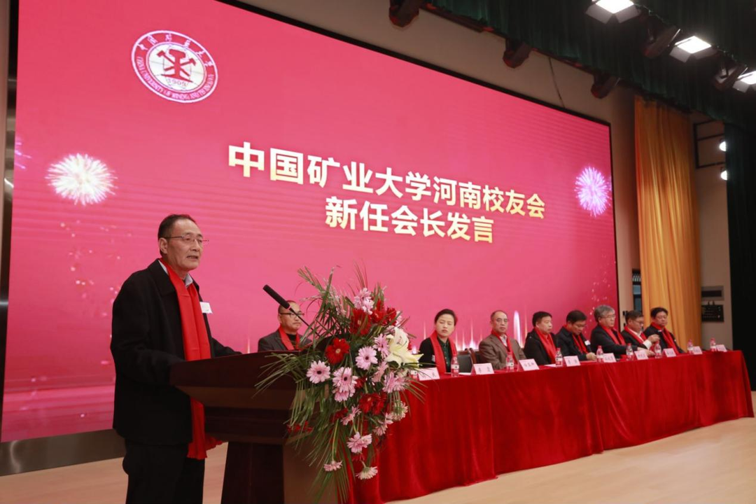 河南校友会第二届理事会会长任玉卿发言。他感谢校友总会领导、河南校友对他的信任和支持,并表示将以情感为纽带,以沟通为基础,以合作为前提,以服务为手段,以活动为载体,以共赢为导向,不断传播和弘扬矿大精神,提高校友会工作的广度和深度,促进校友和学校事业的双向发展,努力推动校友会工作再上新台阶。