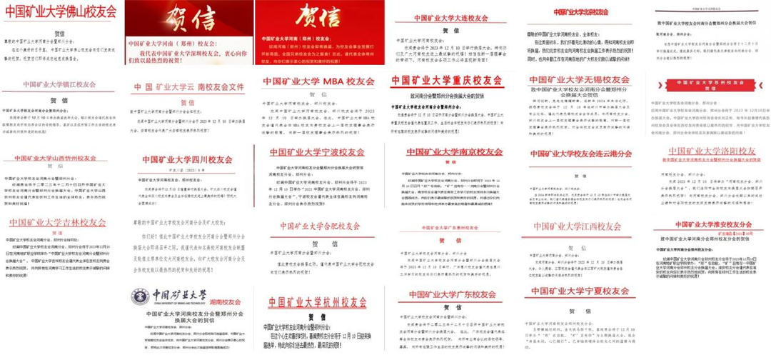 会议还收到北京、重庆、天津、广东、湖南、吉林、江西、宁夏、云南、四川、南京、杭州、大连、合肥、苏州、无锡、镇江、连云港、淮安、深圳、佛山、惠州、常州、宁波、忻州、洛阳校友、MBA校友会,知名高校河南校友会联盟交大河南校友会发来的贺信。