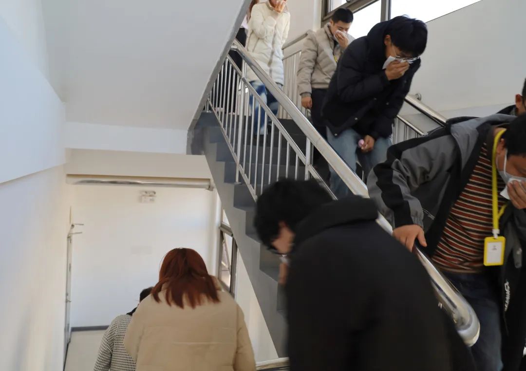 警报声一响,联通智慧客服北方二中心消防灭火疏散演练活动现场模拟“火情”发生,联通工作人员在应急救援员的引导下,捂住口鼻,按照指定的路线有序撤离,短短几分钟后,人员迅速转移到安全地带,并对受伤人员进行检查救助。