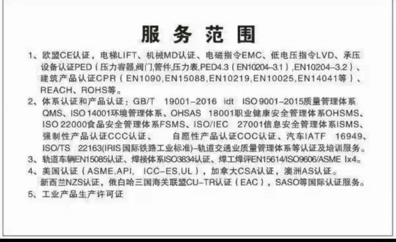 新西兰NZS认证,俄白哈三国海关联盟CU—TR认证(EAC),SAS0等国际认证服务。